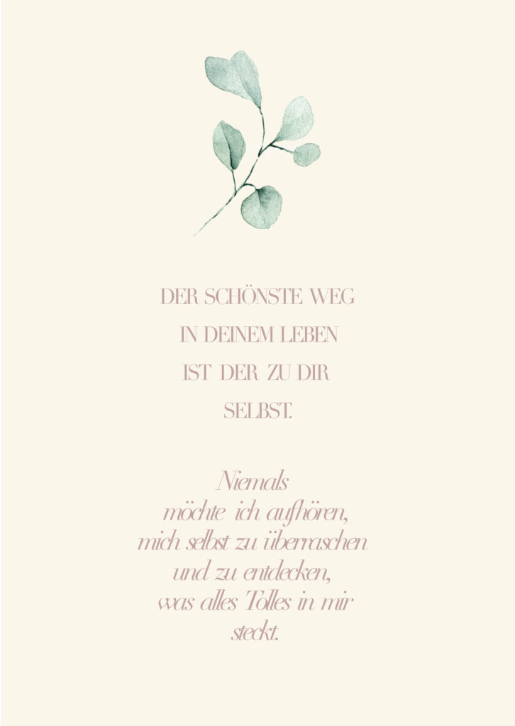 Lebst Du Dein Leben so, wie Du es möchtest? Vielleicht spürst Du den tiefen Wunsch nach Veränderung, aber Du weisst nicht wie und wo Du anfangen sollst. Möchtest Du selbstbestimmt und selbstbewusst Deinen Weg gehen? Du sehnst Dich nach mehr Leichtigkeit. Vielleicht wünschst Du Dir mehr Mut. Denkst Du immer zuerst an andere? Vielleicht bist Du auf der Suche. Oder Du sehnst Dich einfach nach neuer Energie und Inspiration.